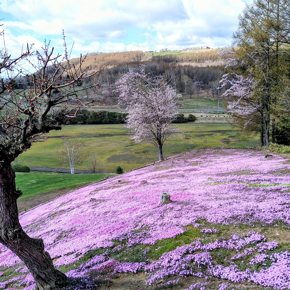 太陽の丘えんがる公園にある芝ざくら公園の『芝ざくら』は、日に日にピンクの面積が広がっており、丘の上部は6〜7部咲きになっています。 現在、芝ざくら公園では、どの花もまだ満開にはなっていませんが、芝ざくら、チューリップ、桜を一度に見ることが出来る僅かなタイミングとなっています♪